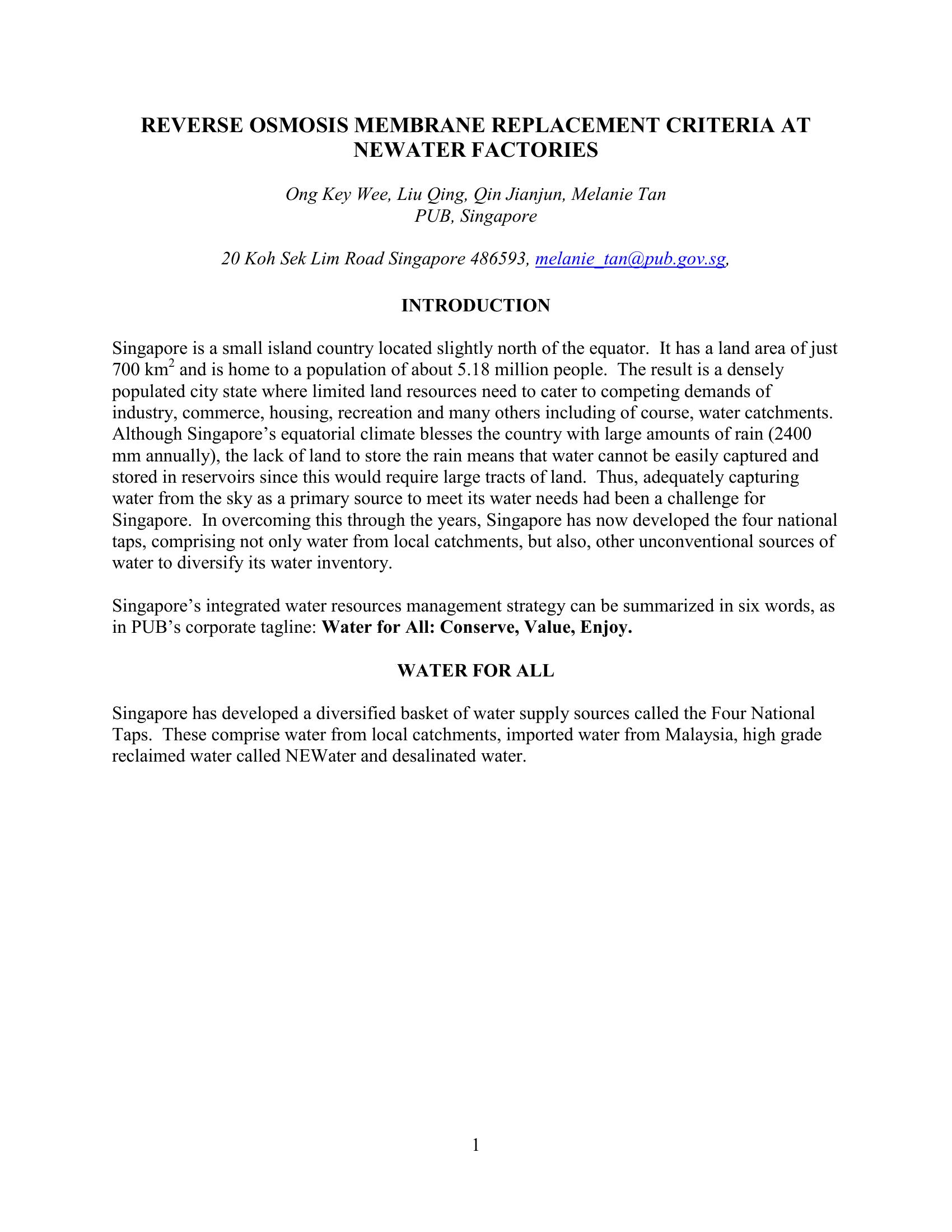 | Keywords | Singapore PUB, Reverse Osmosis, membrane replacement, NEWater process |