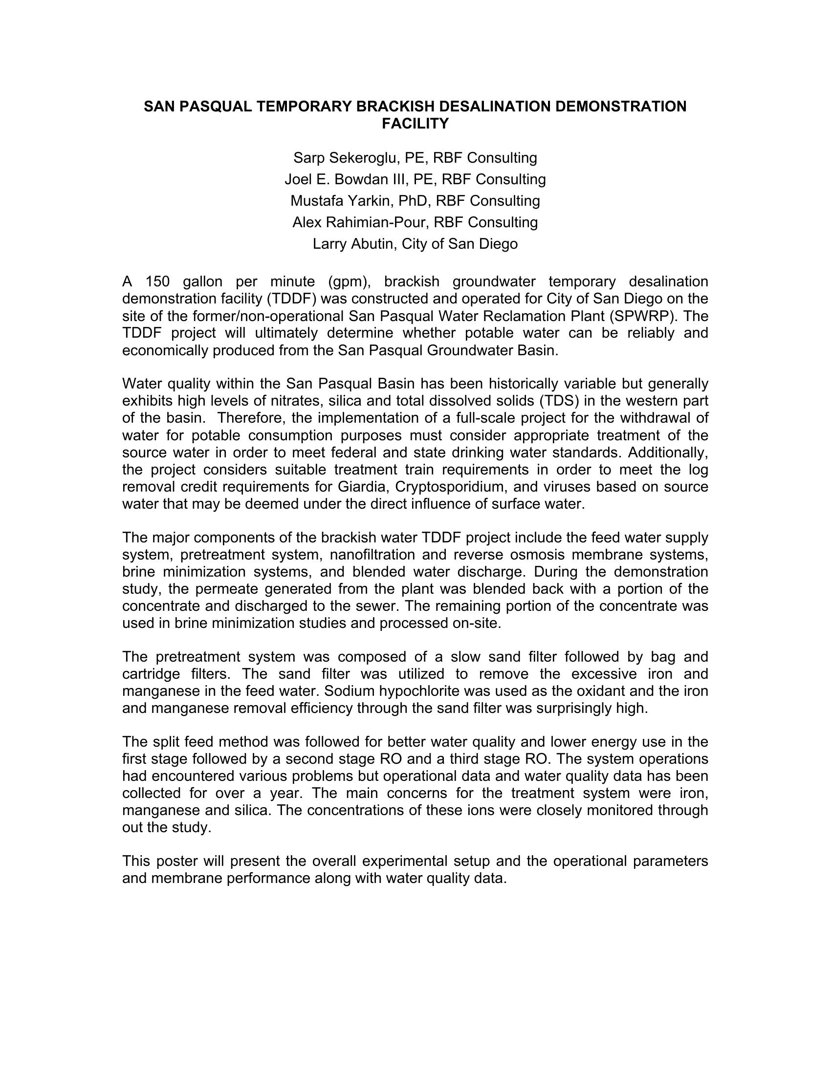 San Pasqual Temporary Brackish Desalination Demonstration Facility