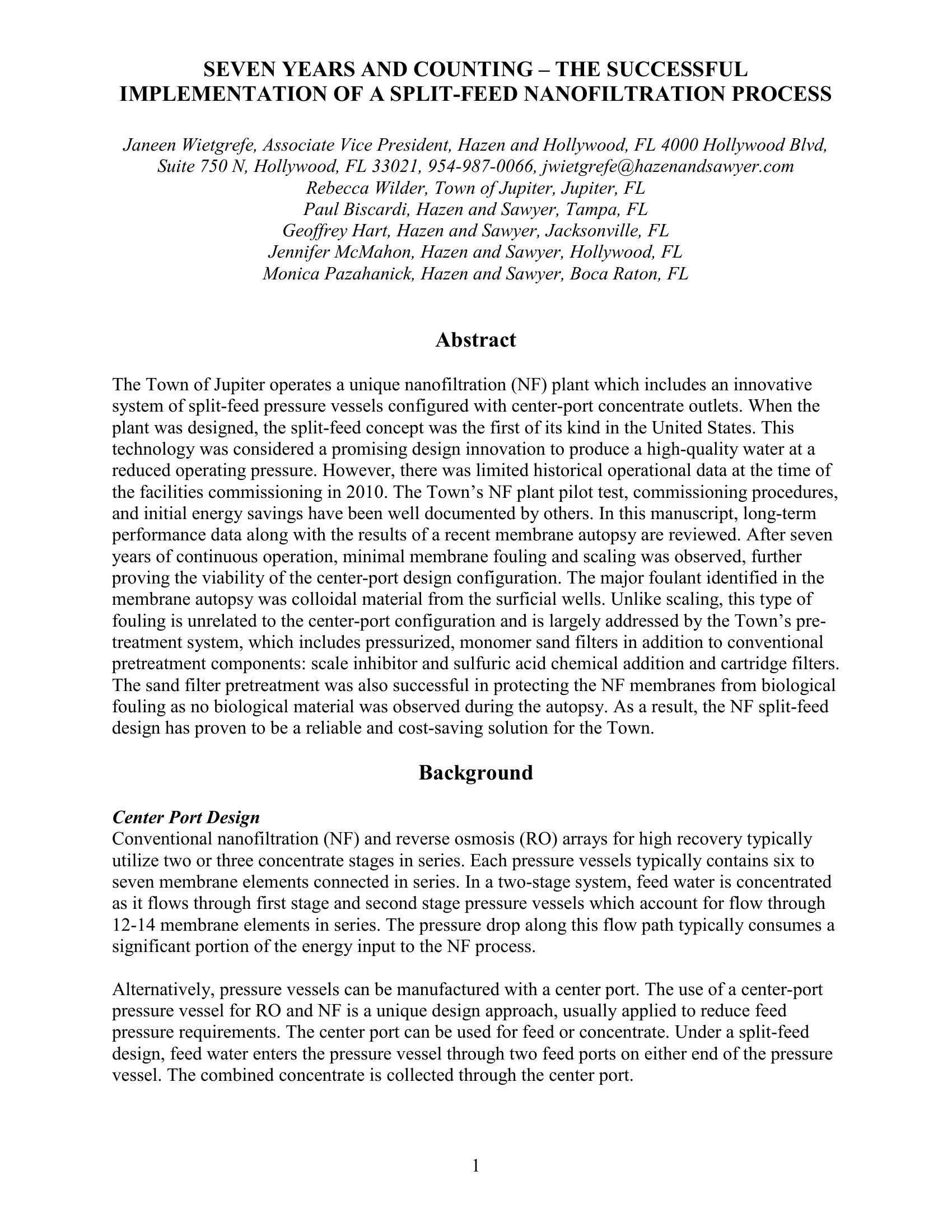 Seven Years and Counting – The Successful Implementation of a Split-Feed Nanofiltration Process at the Town of Jupiter, FL