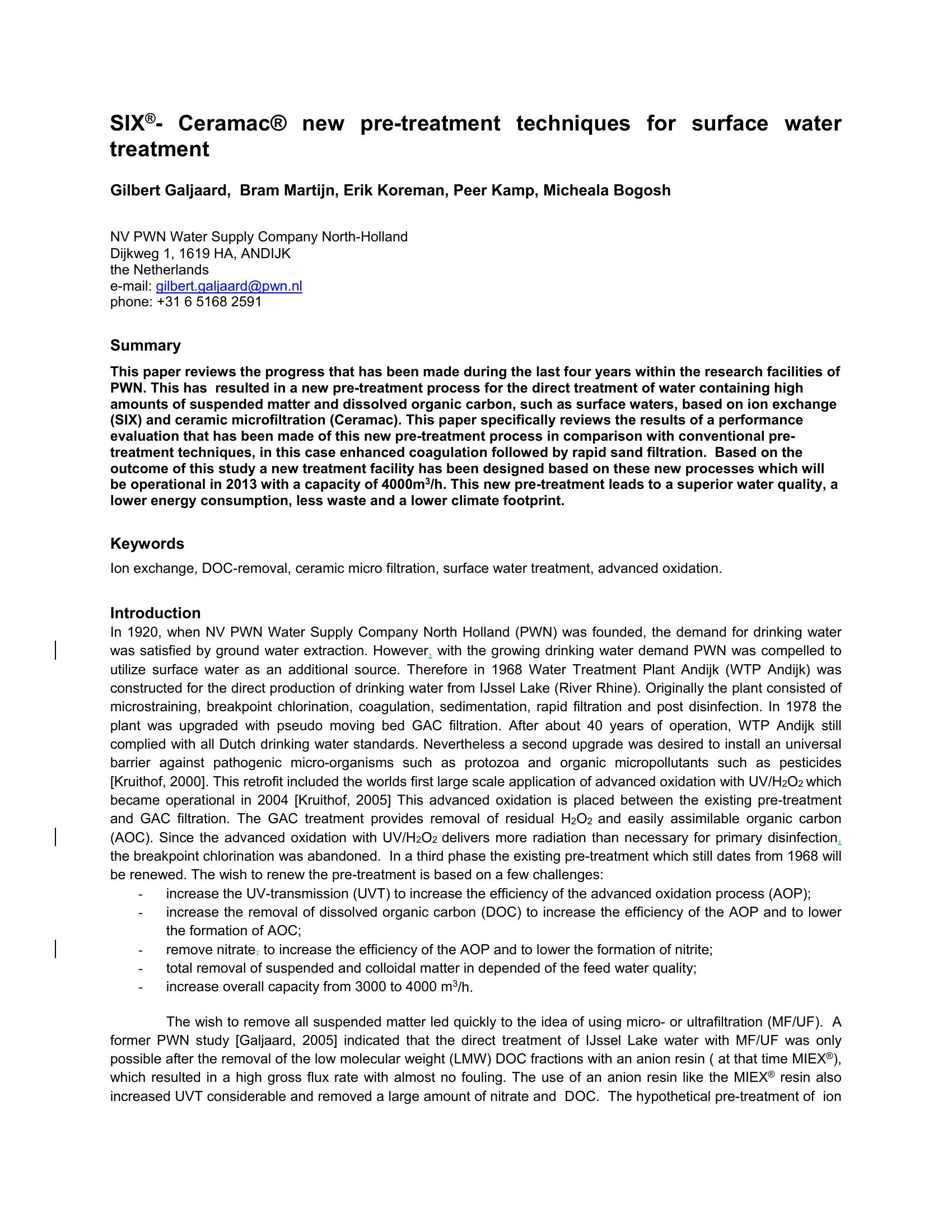 SIX-Ceramic: New Pre-Treatment Techniques for Surface Water Treatment