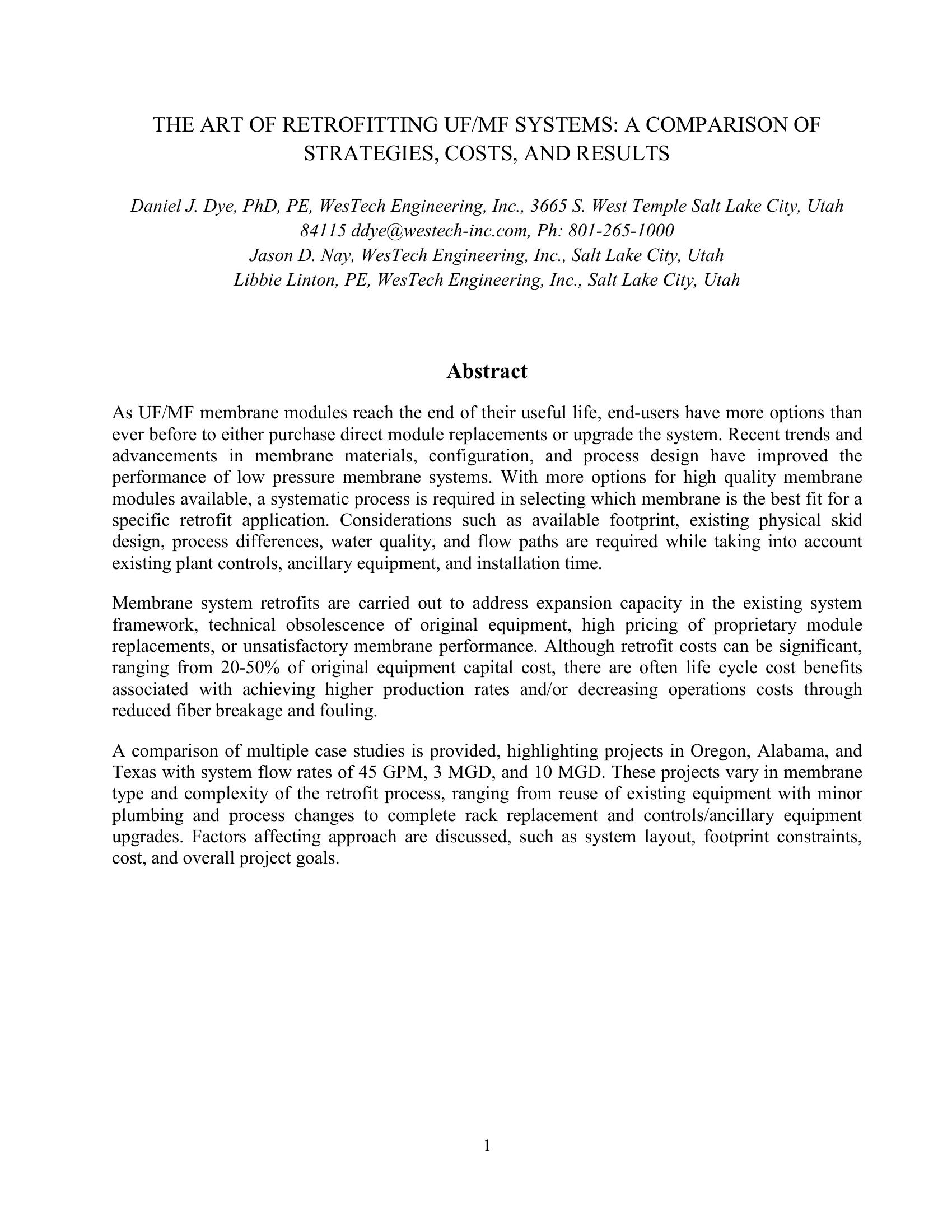 | Keywords | Membrane, Ultrafiltration, Design, Case Study, Retrofit |