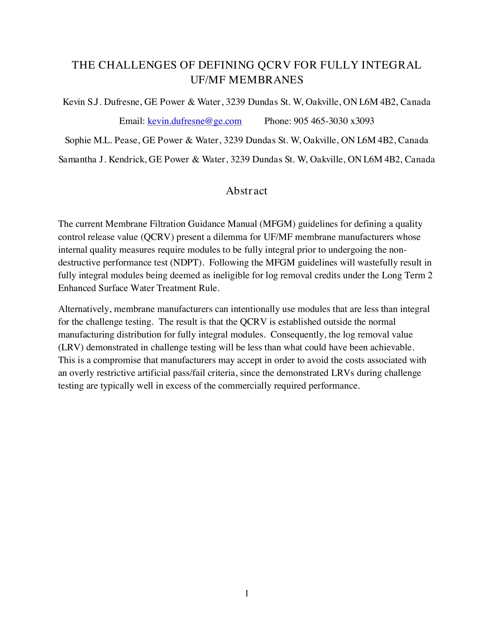 The Challenges of Defining QCRV for Fully Integral UF/MF Membranes