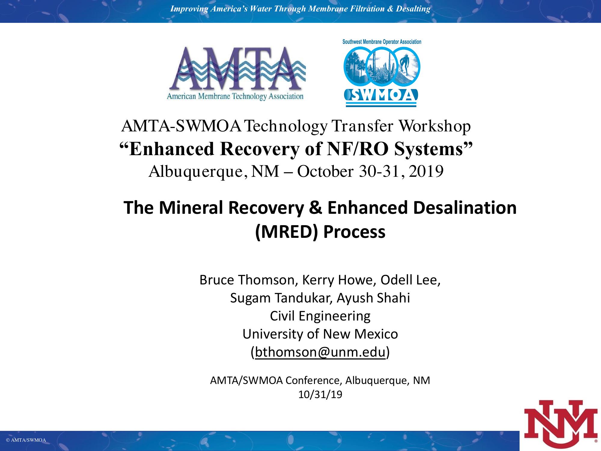 The Mineral Recovery & Enhanced Desalination (MRED) Process