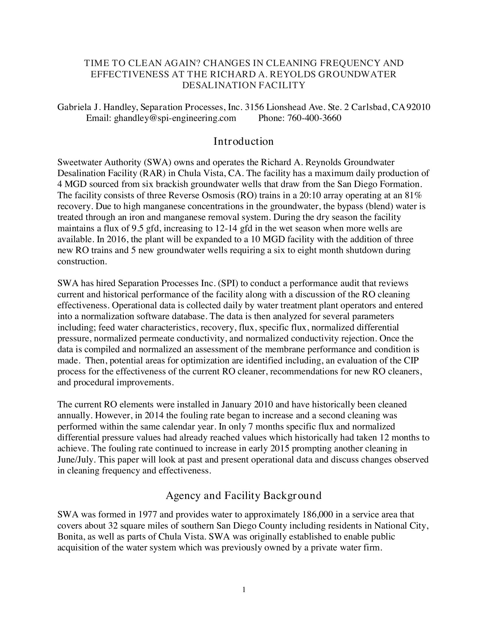 | Keywords | Sweetwater Authority, reverse osmosis, cleaning, fouling |
