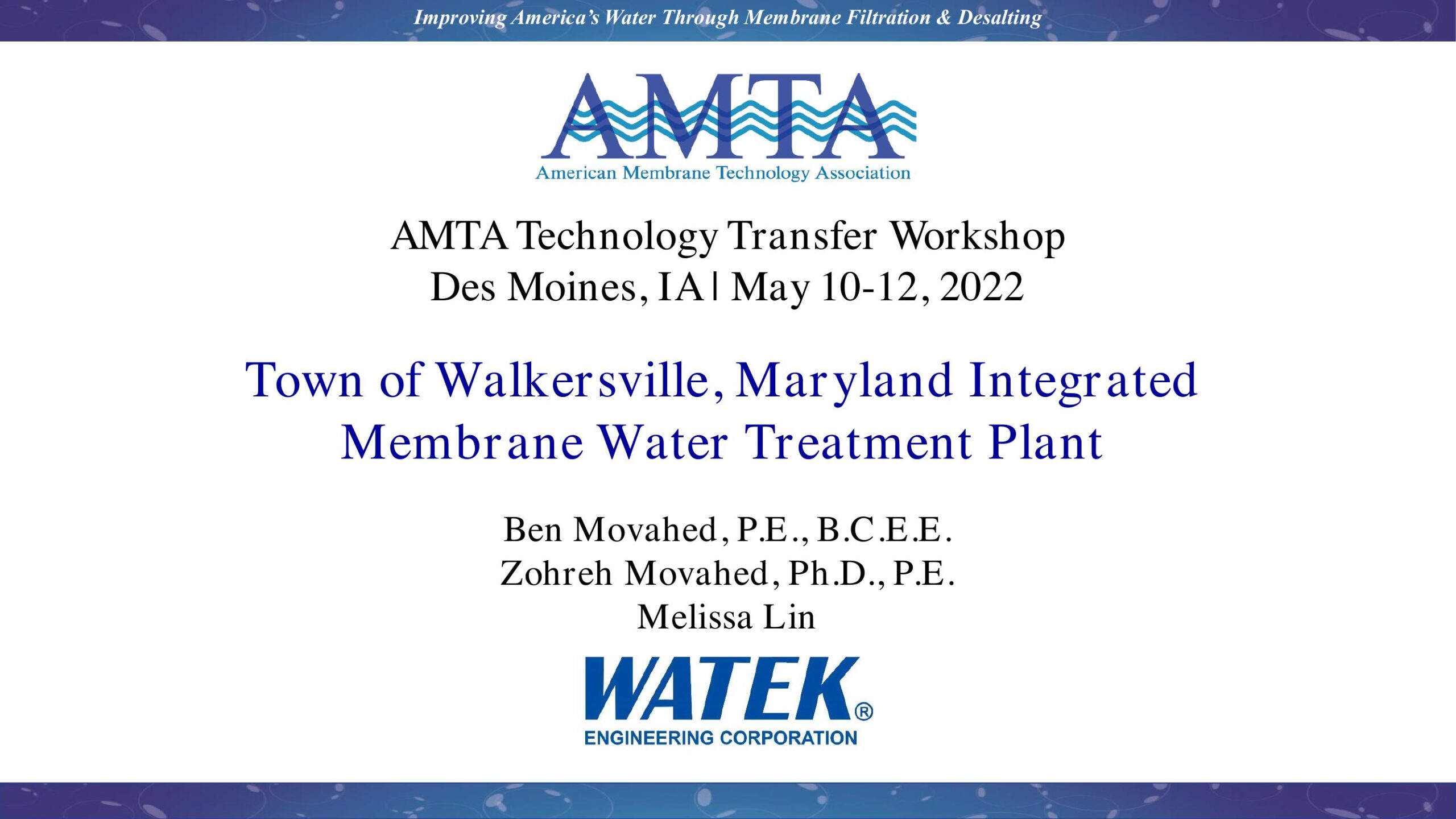 Town of Walkersville, Maryland Integrated Membrane Water Treatment Plant