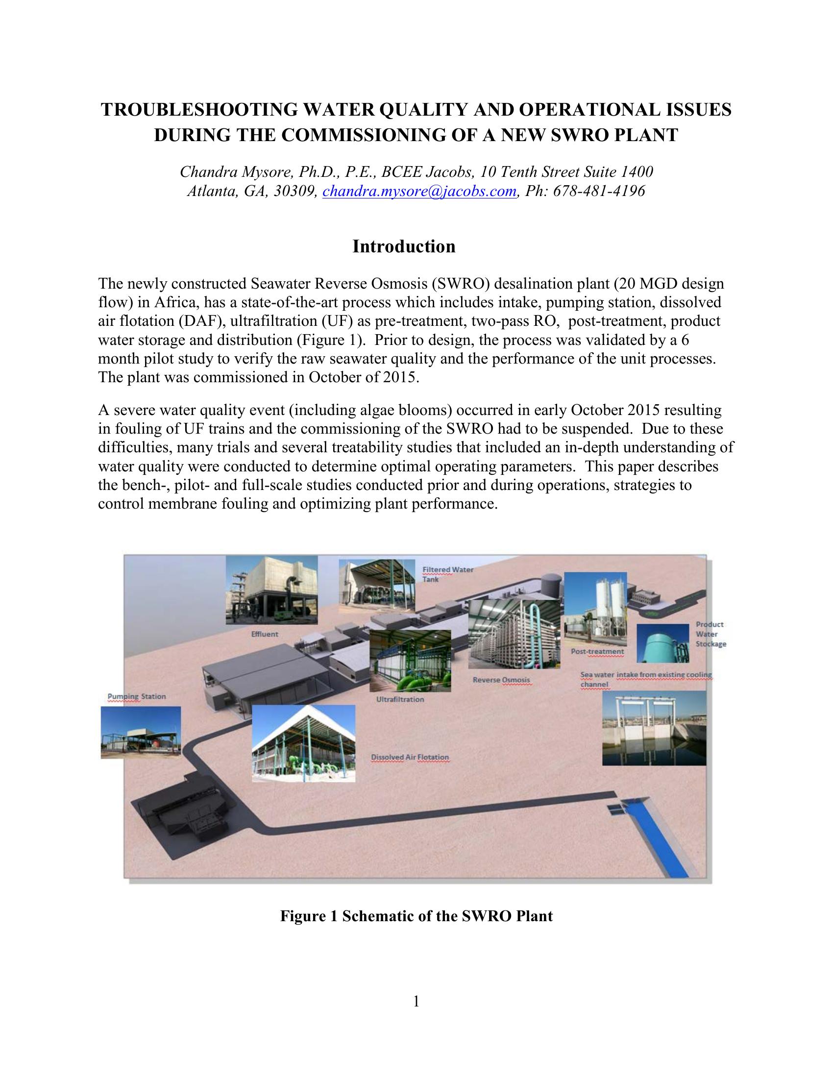The focus of the presentation will be on the detailed evaluation of bench- , pilot- , and full-scale study results, the challenges of implementing and maintaining the required treatment levels for optimal performance of a new SWRO plant under varying seawater quality conditions. The results from this study will provide utilities with an in-depth understanding of the impacts of water quality, specifically inorganic (iron, phosphorous) and organic (TOC, DOC, cTEP) water quality parameters, on the various unit processes, e.g., DAF, UF and RO. Also, several considerations that need to be kept in mind while selecting a new intake location will be presented.