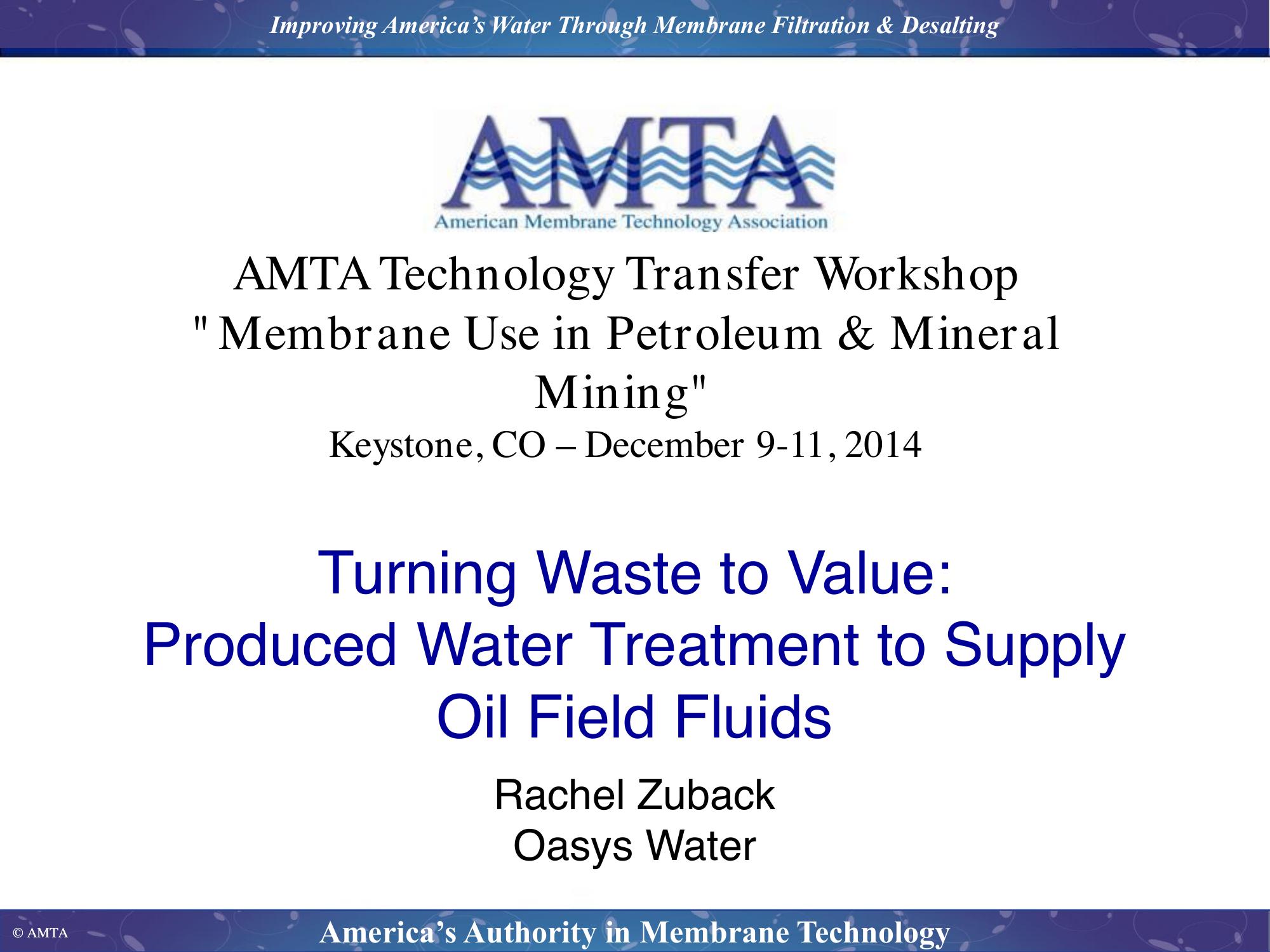 Discusses background on forward osmosis and two case studies employing FO to treat produced water.