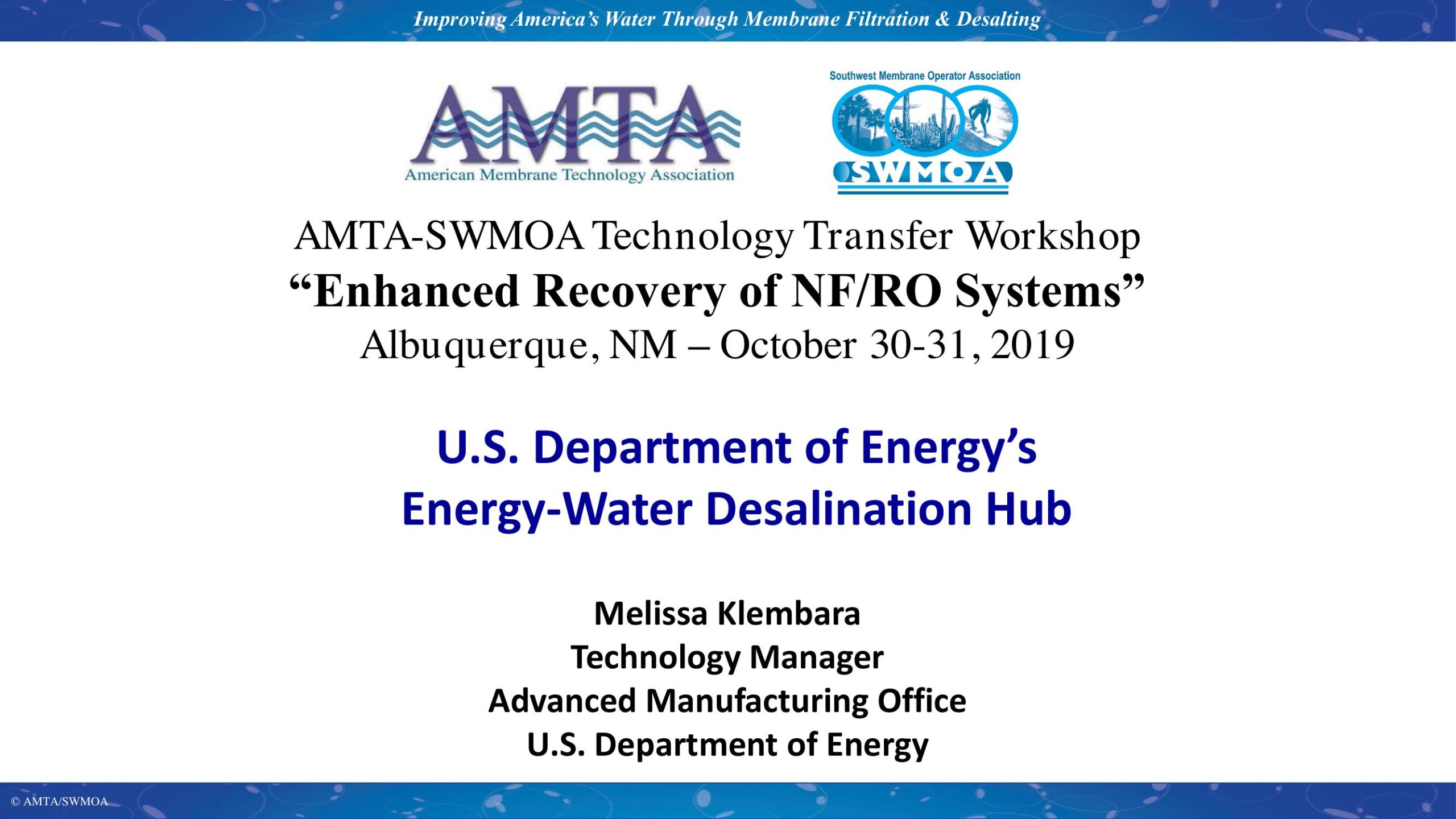 The U.S. Department of Energy is funded a $100 million dollar early-stage research consortia, known as the Energy-Water Desalination Hub (Hub). The presenter will provide an overview of the Hub’s purpose/goals, the selected team to lead this effort, and major the year 1 activities. Attendees can learn how to get involved as affiliates or members of the Hub, such as competing in future workshops; providing data to help benchmark current state of technologies for desalination, water efficiency, water reuse, and resource recovery; and compete for funding in future request for proposals issued by the Hub.