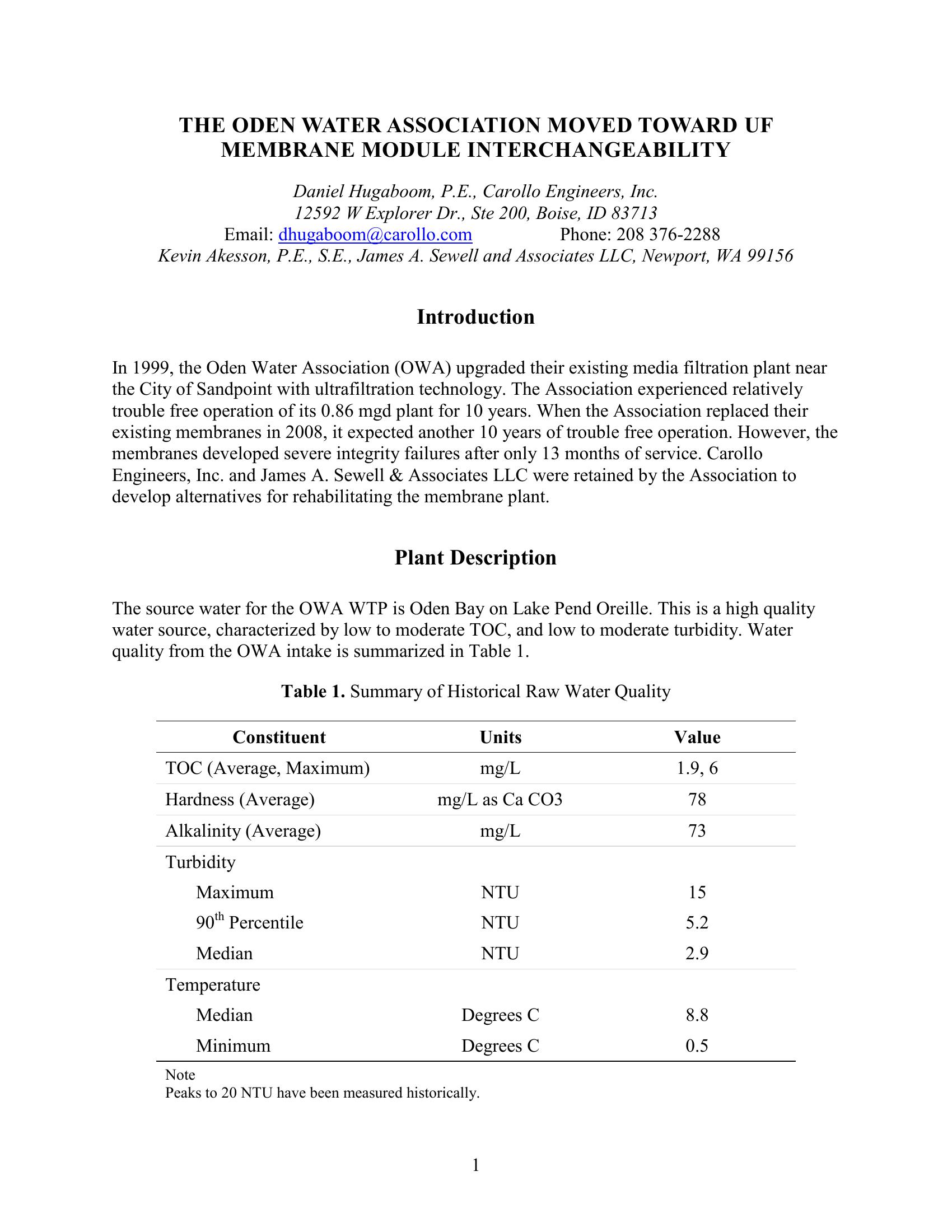 UF Membrane Module Interchangeability at the Oden Water Association WTP