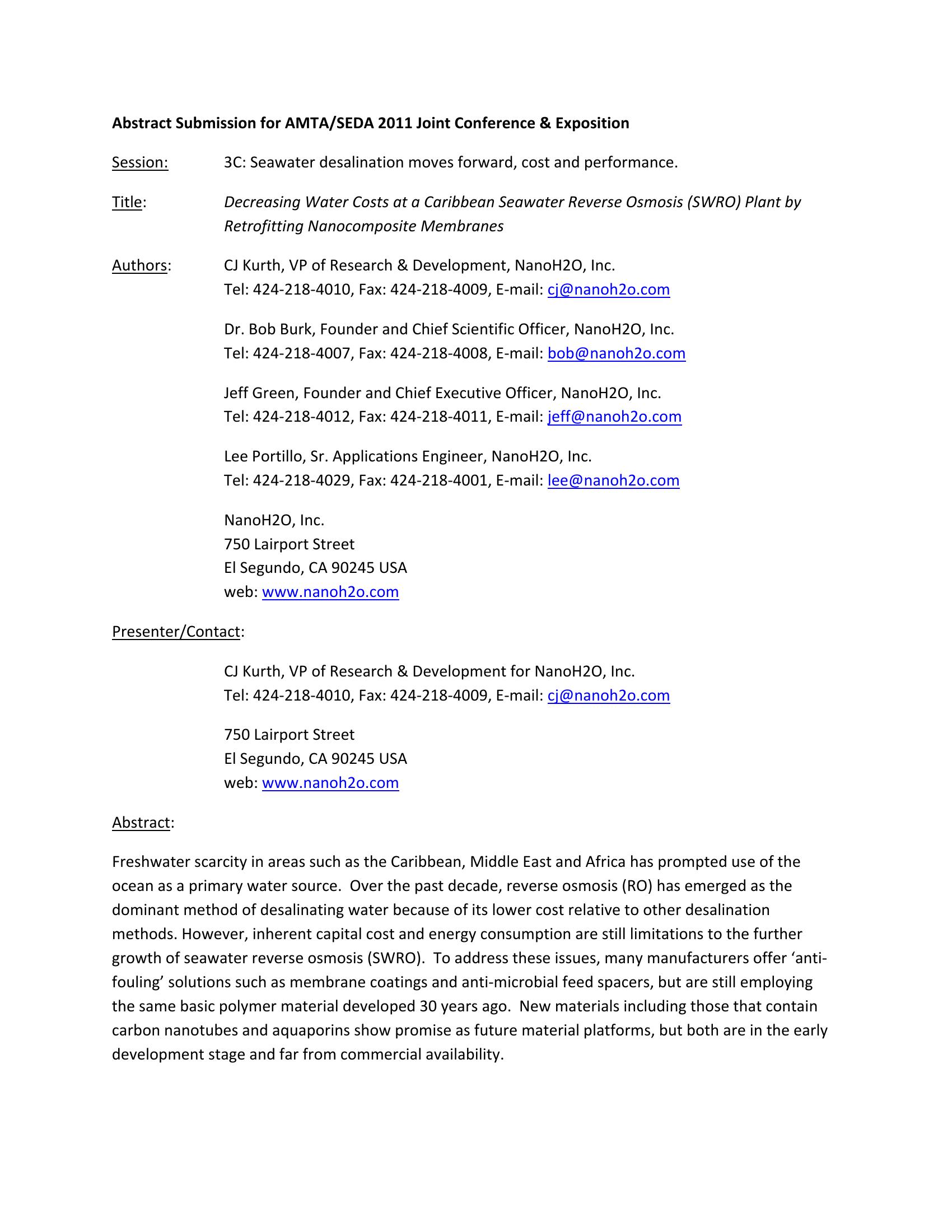 This paper will present system performance and operational data from the retrofit of an existing Caribbean desalination plant that leveraged the enhanced permeability of nanocomposite membranes to decrease water costs via a reduction in energy consumption In addition, the paper will discuss how alternative system configurations address design challenges associated with the use of extremely permeable SWRO membranes, and how to maximize the benefits of nanocomposite membranes
