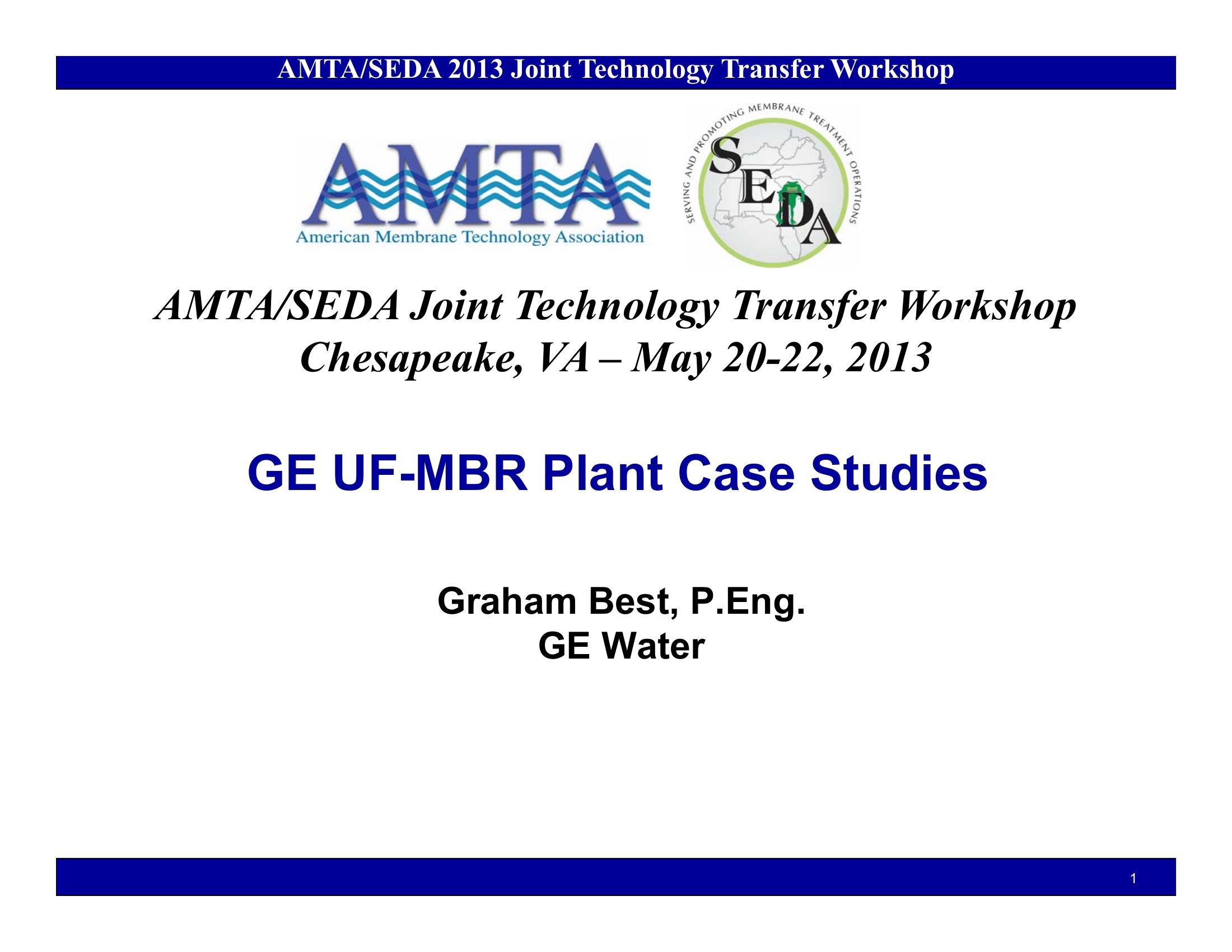This PowerPoint presentation reviews the General Electric ultrafiltration and membrane bioreactor facilities in Virginia and the surrounding area.