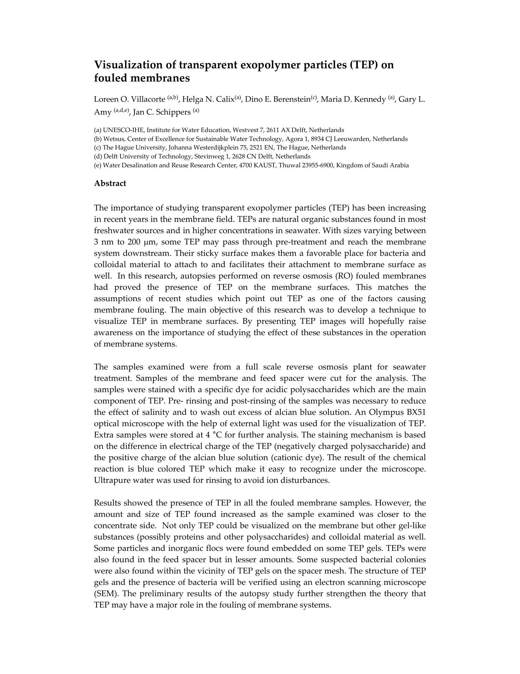 | Keywords | transparent exopolymer particles, fouling, membranes, reverse osmosis |