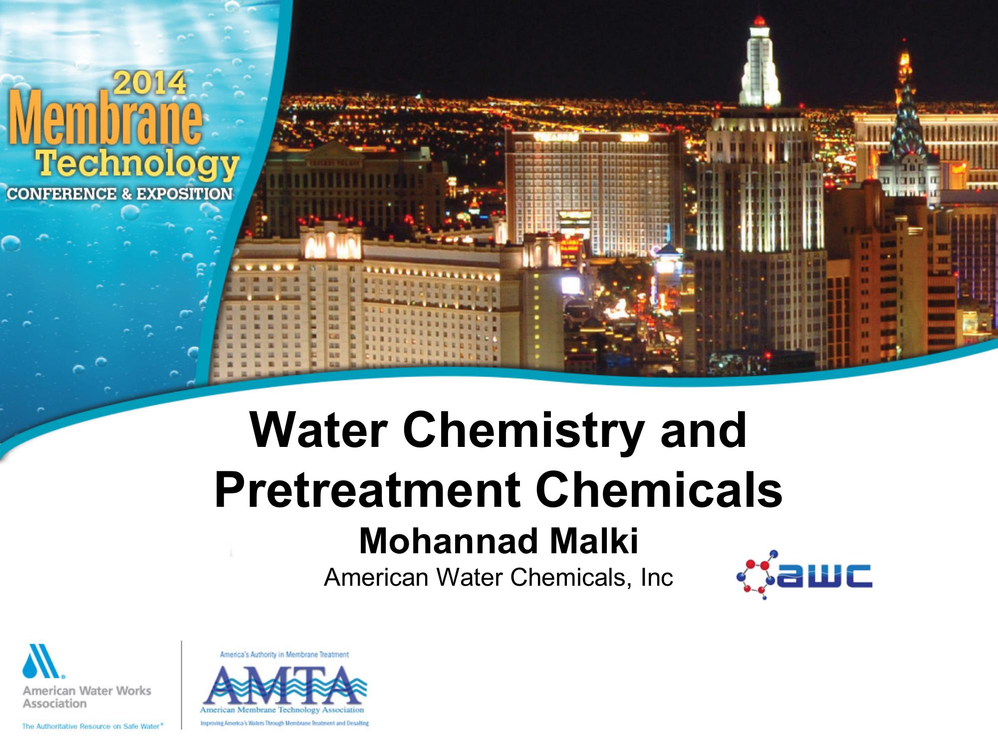 This presentation from a preconference workshop in 2014 for Back to Basics on membrane technology discusses pretreatment chemistry for microfiltration, ultrafiltration, nanofiltration and reverse osmosis. Water chemistry is presented and it’s influence on the membrane treatment methods.