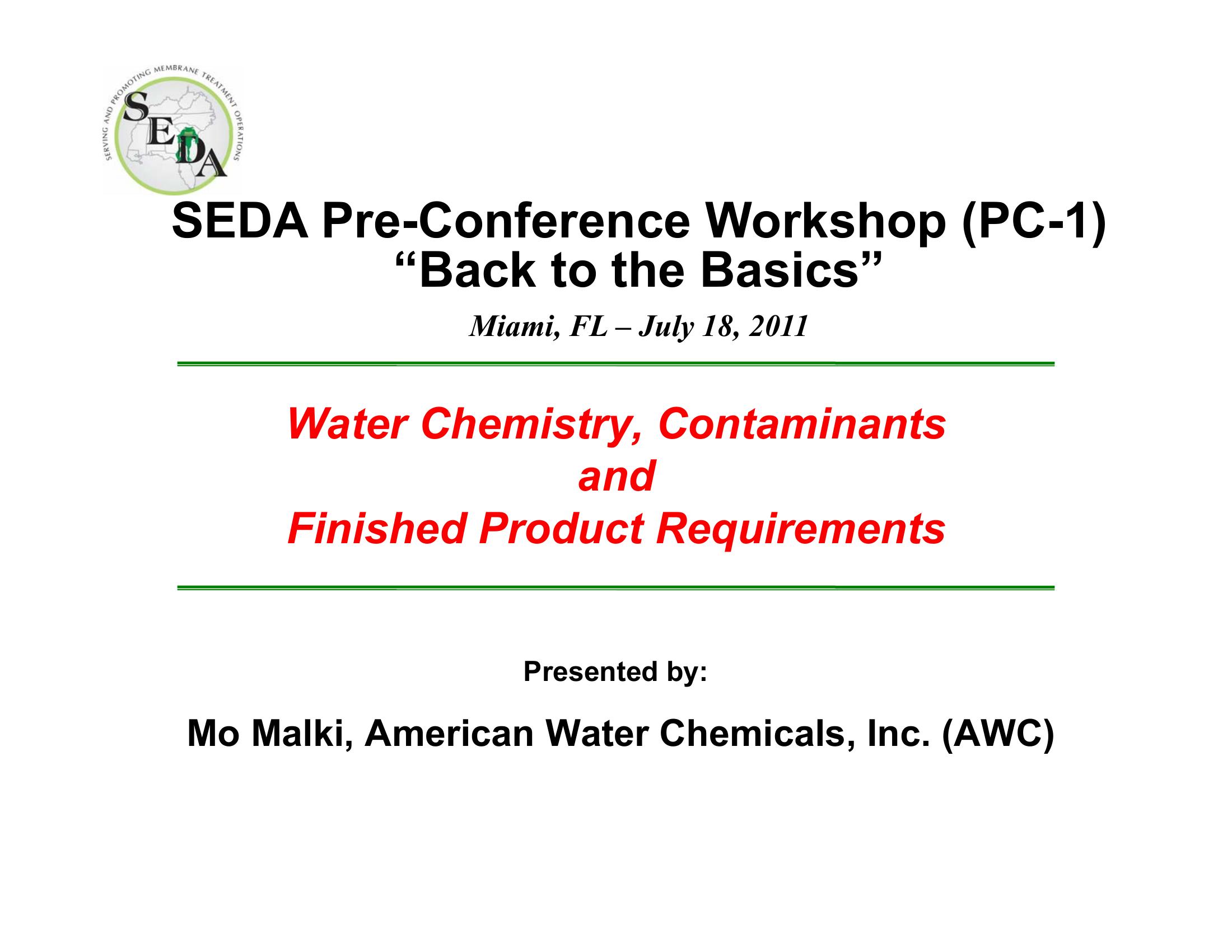 This paper details the requirement to understand the water quality characteristic of the feed and the filtrate requirement. It talks to the addition of pretreatment chemistry to prevent scaling and fouling without adversely impacting product water quality.