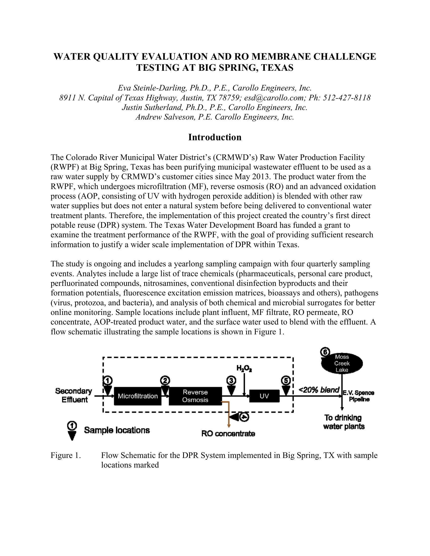 A municipal water district in Texas is purifying municipal wastewater effluent as a raw water supply for drinking water purposes. The process is MF, RO and AOP which uses both ozone and hydrogen peroxide. This project is the first USA direct potable reuse (DPR) system.