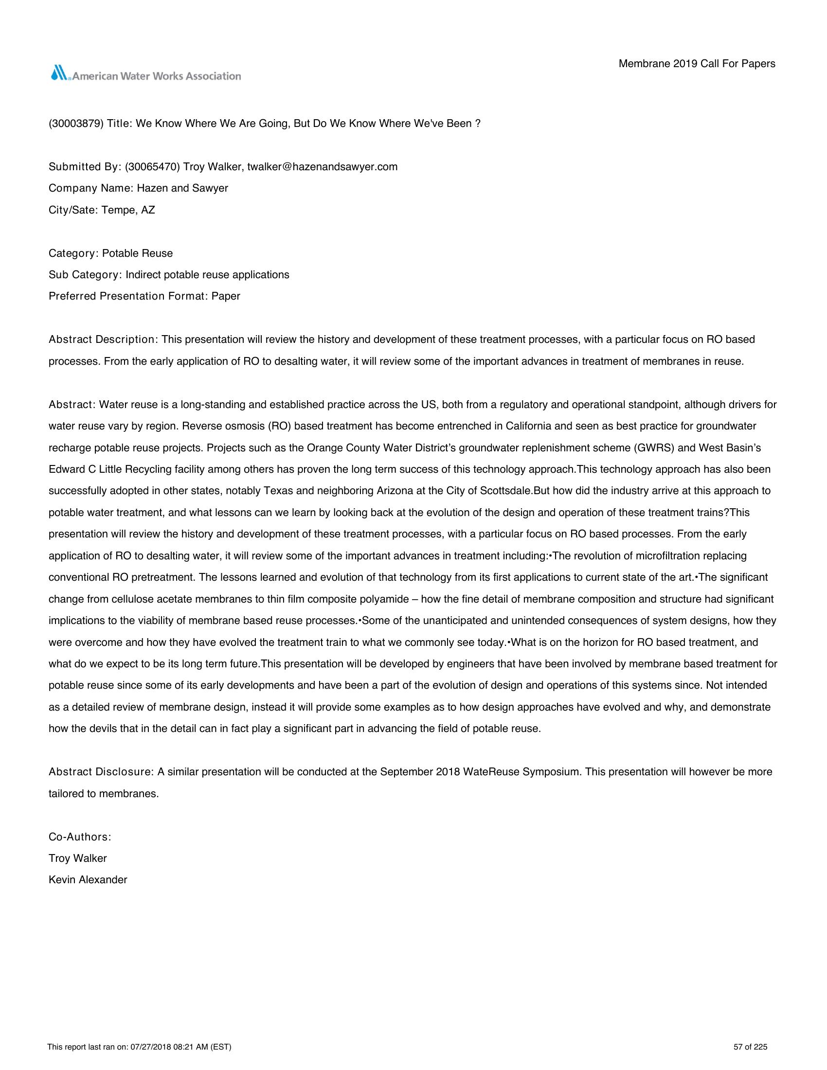 This presentation will review the history and development of these treatment processes, with a particular focus on RO based processes. From the early application of RO to desalting water, it will review some of the important advances in treatment of membranes in reuse.