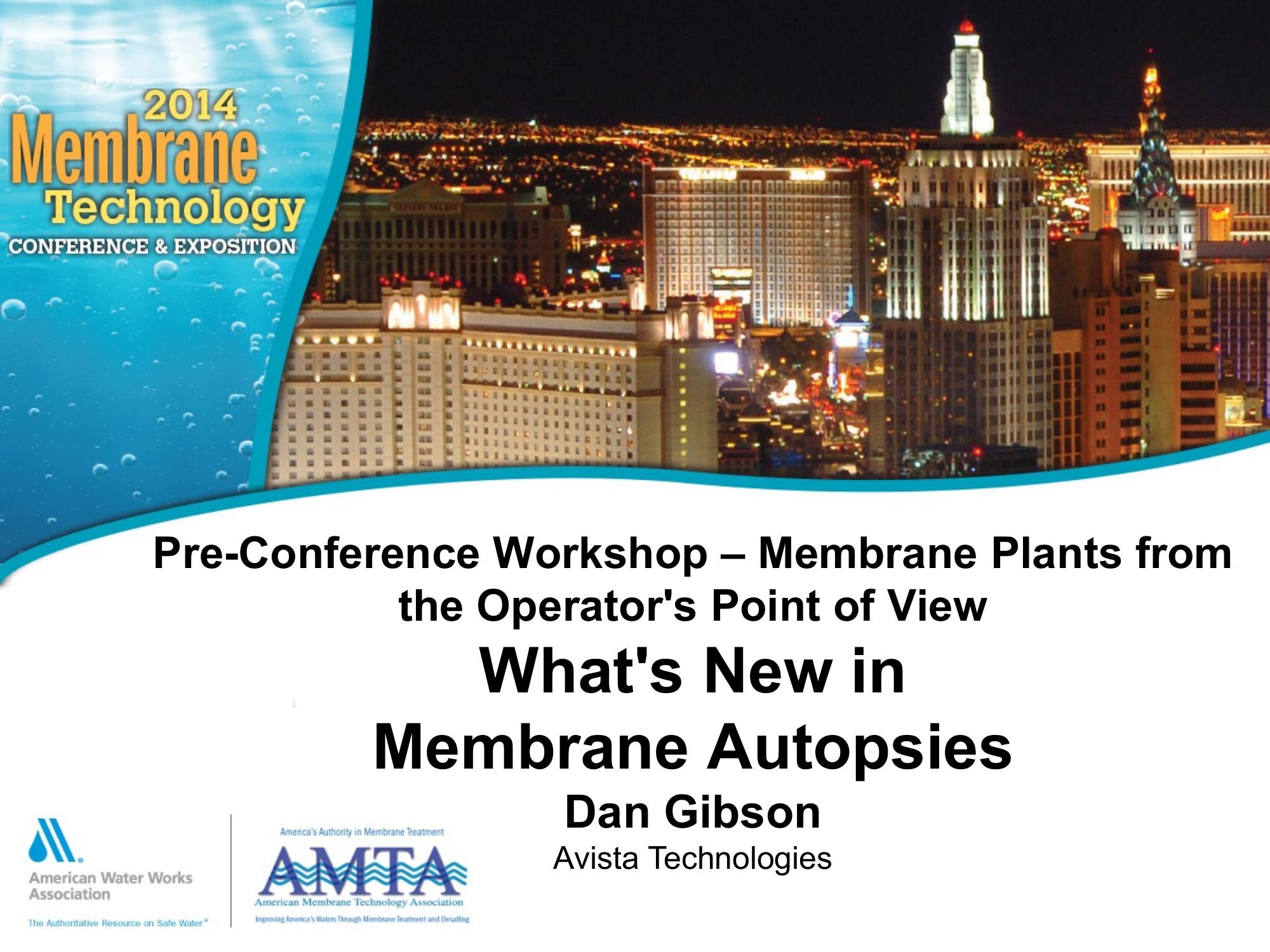 This presentation on membrane autopsies is from a preconference workshop in 2014 that addresses issues from an Operators point of view. Why and when to perform a membrane autopsy along with methods to determine foulants and damage to membrane elements is given.