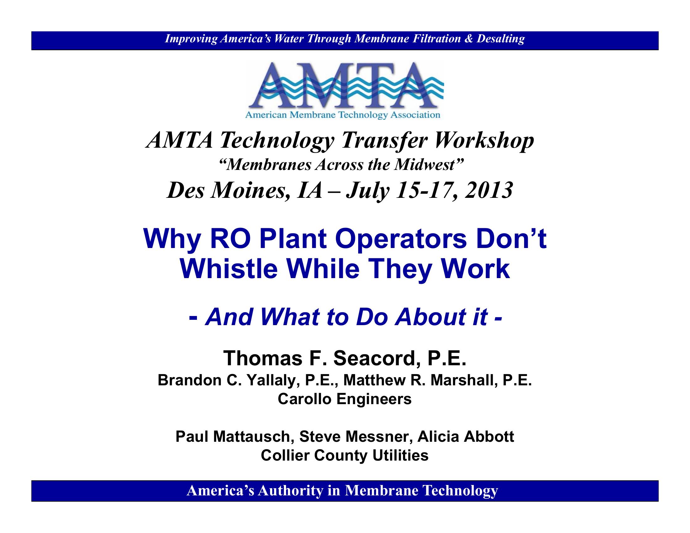 This PowerPoint discusses operator experiences at reverse osmosis plants.