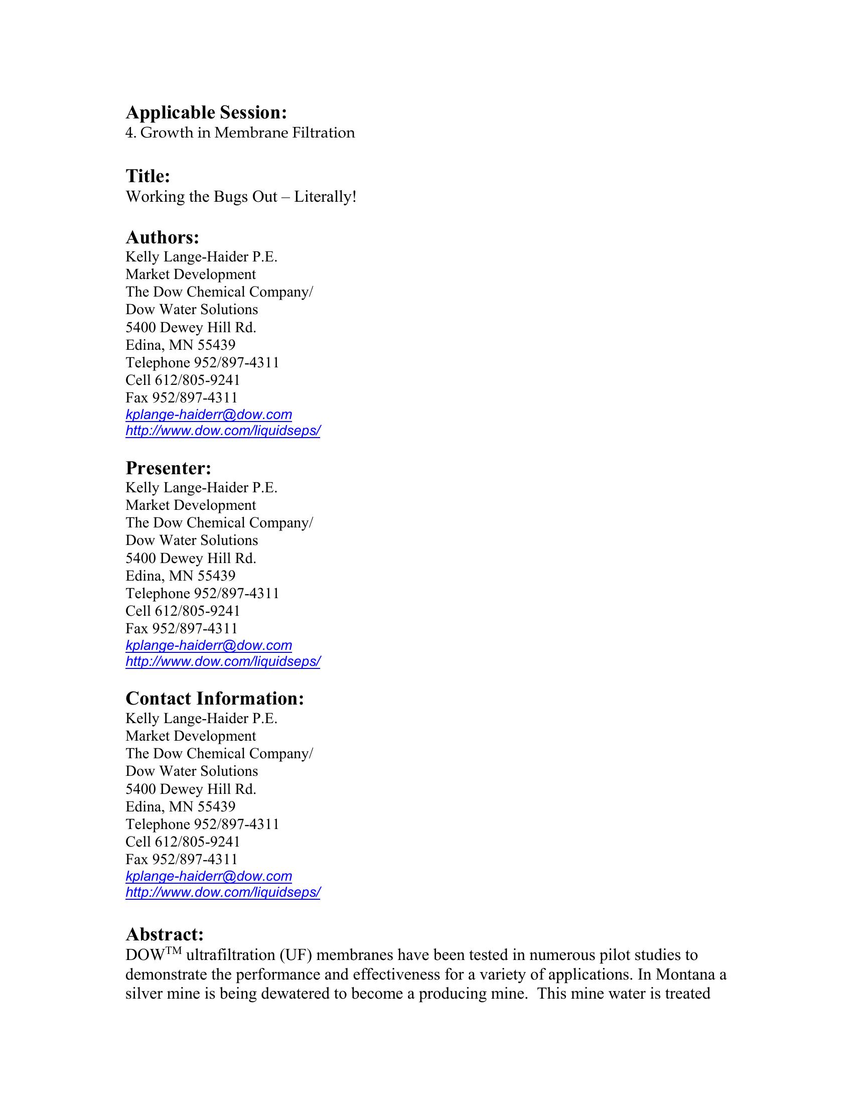 | Keywords | Pilot Testing, Montana Mine, Ultrafiltration, |